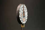 Presenting this stunning African mask, a traditional sun mask wall hanging from the BWA Bobo tribe. Handcrafted by skilled artisans, this unique mask embodies the rich cultural heritage and vibrant artistry of the BWA Bobo people of West Africa. This eye-catching sun mask features intricate designs and beautiful colors that symbolize the tribe's connection to nature and their spiritual beliefs. The mask is designed for wall hanging, making it an ideal decorative piece to enhance the aesthetic of any room. Measuring approximately [13/11.3 CM], it adds a striking focal point to your living space, office, or art gallery. Crafted from high-quality materials, this African mask reflects exceptional craftsmanship and attention to detail. Each aspect of the design is carefully considered, showcasing the artistry that has been passed down through generations. This mask not only serves as a beautiful art piece but also represents the cultural significance of the BWA Bobo tribe, making it a meaningful addition to your collection. Whether you are a collector of ethnic art or looking for a unique piece to elevate your home decor, this traditional sun mask from the BWA Bobo tribe is an excellent choice. Its vibrant colors and stunning design make it a perfect gift for art lovers or anyone who appreciates authentic cultural artifacts. Celebrate the beauty of African culture with this remarkable BWA Bobo sun mask. Don’t miss out on the opportunity to own a piece of history—add this exquisite wall hanging mask to your collection today and infuse your space with the rich traditions of West Africa!