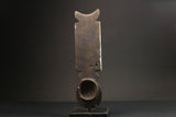 Plate mask of the Bobo mask or Bwa mask tribe [Burkina Faso]; the figure at the top may represent the wise elders of the tribe; these masks always have large round eyes and abstract geometric decoration and are worn during initiation ceremonies. Hardwood carving