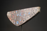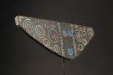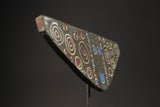 company in order to avoid losing the package African art African Wooden Carved BIG Bobo-Bwa, Burkina Faso Tribe-61.2/9.6 CM An African Wooden Carved Mask Such tall plank Wooden Carved Mask ‘dance’ alongside the Bwa people during large harvest festivals. The lower, round face part of this style of Wooden Carved Mask , called ‘Bayiri’, represents the head of an owl. The hooked projections symbolise the beak of the hornbill. Bird representations often appear on Bobo-Bwa Wooden Carved Mask in different variations. This is because birds embody the connection between the world of man and the world of the supernatural. The present plank Wooden Carved Mask is designed in the typical relief-style of the Bobo-Bwa. The owl face has large, round eyes – each one formed of three black-dyed circles in relief. It has a short, hooked beak as well as an open rhombus-shaped mouth with teeth. A handle for the dancer is placed under the oval shaped owl’s head of this tall, heavy Wooden Carved Mask . The alternating black and white colouring of individual surfaces of the relief is characteristic of Bobo-Bwa Wooden Carved Mask . This is achieved by means of soot-dye and kaolin. The front side of the towering plank, with its four hooked projections,