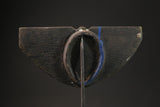 company in order to avoid losing the package African art African Wooden Carved BIG Bobo-Bwa, Burkina Faso Tribe-61.2/9.6 CM An African Wooden Carved Mask Such tall plank Wooden Carved Mask ‘dance’ alongside the Bwa people during large harvest festivals. The lower, round face part of this style of Wooden Carved Mask , called ‘Bayiri’, represents the head of an owl. The hooked projections symbolise the beak of the hornbill. Bird representations often appear on Bobo-Bwa Wooden Carved Mask in different variations. This is because birds embody the connection between the world of man and the world of the supernatural. The present plank Wooden Carved Mask is designed in the typical relief-style of the Bobo-Bwa. The owl face has large, round eyes – each one formed of three black-dyed circles in relief. It has a short, hooked beak as well as an open rhombus-shaped mouth with teeth. A handle for the dancer is placed under the oval shaped owl’s head of this tall, heavy Wooden Carved Mask . The alternating black and white colouring of individual surfaces of the relief is characteristic of Bobo-Bwa Wooden Carved Mask . This is achieved by means of soot-dye and kaolin. The front side of the towering plank, with its four hooked projections,