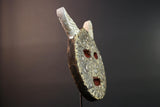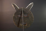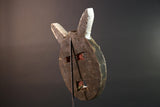 Made by the Bwa people of Burkina Faso, plank masks are used in sacred ceremonies and initiation rites. The mask's round face and projecting ears represent bush spirits, while the textured surface symbolizes protective strength.