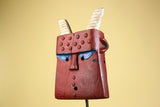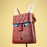 Bwa Style Horned Mask; Red Plank African Tribal Art, Handmade Wood-G6245