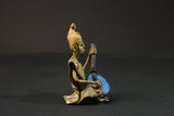 African brass statue Musician Kora Player benin bronze tribal Gold colored-G2891