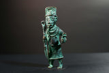 Bronze tribal figure from Nigeria crafted in the Benin style, this sculpture reflects traditional African art and cultural symbolism. Standing 18.5 cm tall with a width of 8.2 cm and depth of 5 cm, the figure holds a staff and animal, representing ritual power and heritage. The bronze patina adds timeless character, making it a collectible artifact or unique décor accent. Perfect for African art collectors and home décor displays