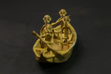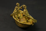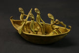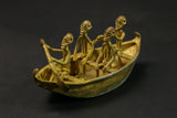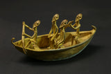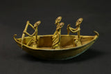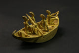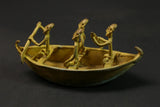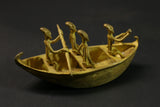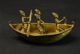 figures this elongated bronze alloy canoe depicts figures relating to the story of the dogon genesis in african tribal art. it illustrates the story of the figures dogon ark led by nommo figures and sent by the creator god amma to populate and reorganize the earth. the crocodile-shaped creature that forms the bowand stern represents ayo geu , a crocodile that killed nommo. the seven figures seated in the boat are the original dogon ancestors, who are frequently found on other sculpted works of african dogon art, such as attic doors. the sides are decorated with motifs depicting snakes, another element of the bestiary linked to mythology. the dogon are a people renowned for their cosmogony, their esotericism, their myths and legends. their population is estimated at around 300,000 souls living in the south-west of the nigerloop in the moptiregion of mali