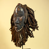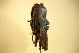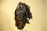 African Antique Dan Mask With Cowrie Beard & Braided Fiber Hair Tribal Art-G6034