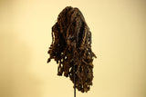 This antique mask comes from the traditional Dan communities of West Africa, crafted in wood and enriched with braided fiber and natural cowrie elements. The mask displays a strong aged patina developed over decades of cultural use, showing marks of time that collectors highly value. Its expressive contours and deep facial structure give the mask a refined presence, making it ideal for serious ethnographic collections or premium display. Stand Not Included.