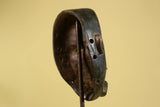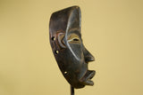 Carved from hardwood and finished with a naturally aged patina, the mask shows authentic signs of traditional handling. Pierced side holes indicate original attachment points for fibers or costume elements. Its refined proportions and expressive features make it ideal for collectors of African tribal art or as striking African wall decor.