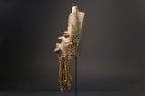 Classic style in this African mask of Côte d'Ivoire: slightly curved face, convex forehead, almost closed eyes whose circumference is accompanied by white pigment. Ancient rope headdress decorated with cowrie shells. No goatee. In the Dan, the tribal mask is inhabited by the spirits of the bush