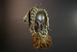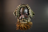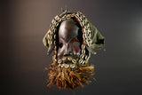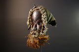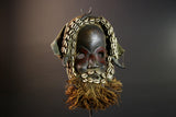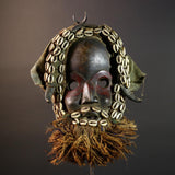 African Dan Mask Hand Carved Wood with Raffia Beard Cowrie Shell Trim Tribal Art Decor Unique Ethnic Wall Hanging Collectible and Home-G5692