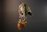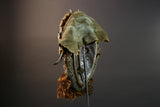 Bring authentic mask West African style into your home with this hand-carved African Dan mask. Featuring a textured cloth hood, natural raffia beard, and gleaming cowrie shell trim, this tribal wall decor piece beautifully captures the traditional artistry of the Dan people. Each curve and carve reflects skilled craftsmanship, making it a stunning focal point for any room, gallery wall, or mask collection. Whether you’re a collector of tribal art or seeking a unique accent for your living space, this Dan mask adds warmth, cultural heritage, and timeless elegance to your décor.