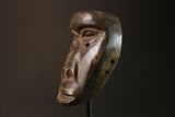 African Dan Racing Mask Round Eyes Authentic Tribal Art Collectible Unique Decor - G3245