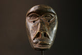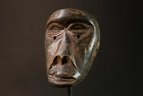 Experience the allure of African artistry with this exquisite Dan Racing Mask, a fine example of traditional mask-making from West Africa. Characterized by its unique features, this mask boasts round eyes, a rounded forehead, and pointed cheekbones, all highlighted by a rich, dark patina that adds depth and character to its appearance. Originating from the esteemed Pierre Graindorge-Baron Collection, this mask stands as a testament to the rich cultural heritage and artistic traditions of the Dan people. Known for their vibrant ceremonies and intricate carvings, the Dan people use masks like this one in various traditional contexts, including racing events that test speed and agility. Each detail of this mask reflects the skilled craftsmanship and cultural significance it embodies. The round eyes and dynamic facial features are designed to provoke and capture attention, serving not only as a piece of art but also as a cultural artifact with a deep connection to history and tradition. This Dan Racing Mask is an ideal addition to any collection of African masks or tribal art, offering a glimpse into the customs and creativity of the Dan community. Perfect for display in homes, galleries, or private collections, this mask is a captivating piece that sparks conversation and admiration. Add this extraordinary artifact to your collection and celebrate the timeless beauty and heritage of African art.