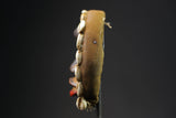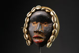 collection This African dan mask is equipped with a headdress embroidered with cowrie shells that are extended by numerous fiber mats. The face is lined with textile, rosary of seeds and raffia. The dancer wearing this mask is called takanglé. It was following dreams in which the spirits manifested themselves that the masks were sculpted according to precise indications in order to be honored through their appearances. The Dan also carve, always according to the indications of the diviner, miniature masks on the model of the large masks. They are worn as amulets by children. Dan masks, of varying craftsmanship, generally occur during very theatrical entertainment parties where women play a leading role. The so-called "mocking" mask called Déanglé defines an ideal of beauty and benevolence because it is sculpted in honor of the young girls of the village or famous men. Each of the masks had a name related to its function.Also used during circumcision rites,gle sö and large go ge masks relating to the go society , which exercises justice and maintains social stabili