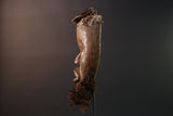 With its dark wood surface, geometric mouth, and kaolin-lined eyes, this african tribal mask was carved to provoke awe and mystery. The fiber beard attached beneath the chin is an essential element of Dan ritual aesthetics, used in ceremonial performances to personify forest spirits and guardians.