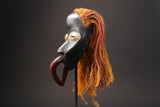 Classic style in this African mask of Côte d'Ivoire: slightly curved face, convex forehead, almost closed eyes whose circumference is accompanied by white pigment. Ancient rope headdress decorated with cowrie shells. No goatee. In the Dan, the tribal mask is inhabited by the spirits of the bush