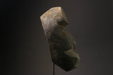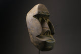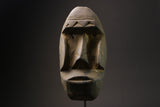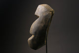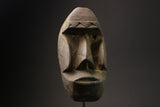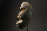 This little African mask is actually a replica of a lineage mask and was worn by those who traveled. Passport masks of this type allowed travelers to be protected by ancestors while traveling. The soothsayer consulted before the start of the trip prescribed or not the realization of this type of mask. They could also serve as witnesses during rites of passage. These masks were worn not on the face but on the arm or in the hand. Here, a long bifid +