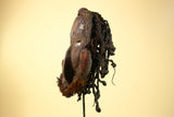 African Vintage Dan Mask with Braided Fiber Hair & Cowrie Shel Details Art-G6010