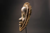 Dan African face mask are to be filled with Ge mask , an independent supernatural being. mask Worn by an initiated member of a Dan men's society, these African face mask can explain the presence of Gle, but also heal or educate. It is performed to emphasise structures and hierarchies in Dan African face mask society..
