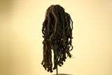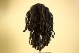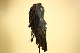 This antique Dan mask presents powerful traditional styling, combining carved wood, braided fiber, and classic cowrie shell elements. The mask shows deep age, natural wear, and surface patina consistent with long cultural use. The elongated facial structure and braided beard give this mask the iconic Dan presence prized by collectors.
