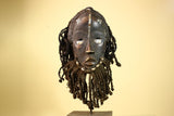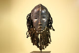 Antique Dan African Mask with Fiber Beard & Cowrie Details Tribal Wood Mask-G6011