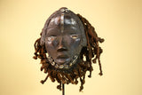 Antique Dan Mask Côte d'Ivoire African Tribal Art Cowrie Braids Metal Art-G6013