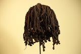 This antique African mask comes from the Dan culture of West Africa and displays the powerful hand-carved presence that collectors value. The mask features deep-cut facial planes, metal inlay details across the brow and eyes, and a dramatic braided fiber coiffure that frames the entire mask. Each braid is tightly twisted and aged naturally, reinforcing the authenticity of this vintage ceremonial mask. Stand Not Included.