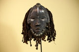 Antique Dan Mask with Braided Beard & Metal Inlays African Collectible Art-G6035