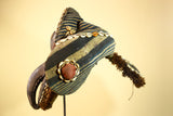 Authentic Dan Tribal Bird Mask Cowrie Shell Textile Liberia African Art -G5996