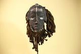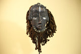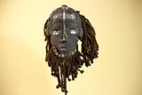 Vintage Dan African Mask with Cowrie & Braided Fiber Hair–Tribal Wood Mask-G6020