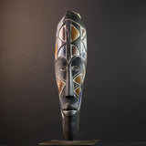 African tribal mask, Fang Ngil face carving from Gabon, long wall sculpture art, hand carved wood mask, ancestral spiritual home decor-G5388