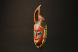 African Authentic Tribal Face Mask Hand-Carved Wooden Baule Style from Akan Peoples Unique Home Decor Piece - 9198