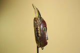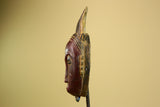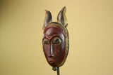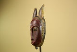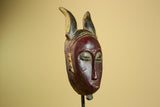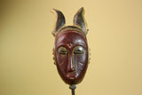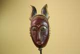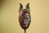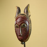 African Baule Mask Carved Wood Red Face Horns Côte d’Ivoire Tribal Decor-G5976