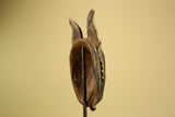 This African Baule mask is a carved wood mask featuring a red face with tall horn forms and calm closed eyes. The mask measures 23 cm × 10 cm × 5.5 cm (9.05" × 3.93" × 2.16") and shows vintage wear consistent with age. This expressive Côte d’Ivoire mask reflects traditional carving style and symbolic horn elements. A striking display mask for collectors, décor lovers, or tribal art settings. Stand not included.