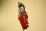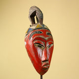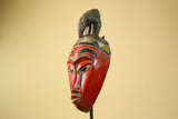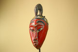 African Baule Mask Carved Wood Red Painted Tribal Art Côte d’Ivoire Vintage-G5956