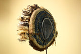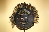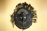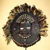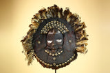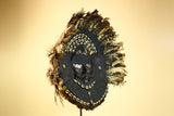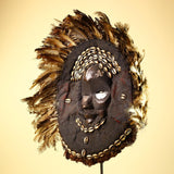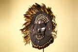 African Baule Mask Cowrie Feather Wood Carved Tribal Art Côte d’Ivoire Decor-G5988