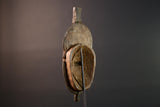 Baule masks are used in ceremonial dances, rituals of protection, and celebrations of ancestral spirits. This example features a tall coiffure, half-closed eyes, long narrow nose, and fine scarification — all carved from dark, aged wood. Its expressive yet peaceful face makes it ideal for cultural display or thoughtful decor.