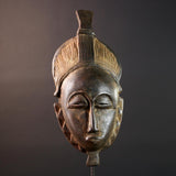 African Baule mask tribal carved wood face art from Ivory Coast traditional scarification and hairstyle design ceremonial wall decor G5470