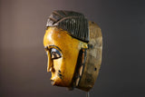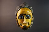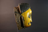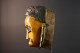 African Baule mask yellow face carved wood mask with blue eyelids tribal portrait decor scarification marks wall art handmade G5506