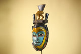 African Guro Mask with Bird Crest Hand Carved Tribal Art Wood Decor-G6052