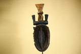 Carved from seasoned wood and shaped with traditional techniques, this African mask carries stylized contours around the eyes, ridge details at the sides, and a tall crest that enhances the vertical silhouette. Its aged surface shows natural patina that supports the vintage character of the African mask, adding depth and authenticity to the display value. Stand Not Included