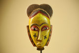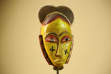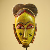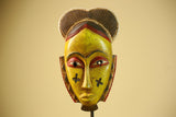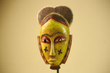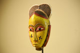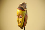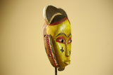 African Guro Mask Yellow Face Wood Côte d’Ivoire Tribal Art Wall Display Decor-G5833