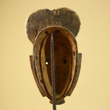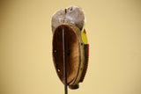 Hand-carved from wood and painted in warm yellow, red, and black tones, this African Guro mask from Côte d’Ivoire captures traditional artistry and elegance. Measuring 25 × 14.6 × 7 cm (9.8 × 5.7 × 2.8 in), the mask represents beauty and cultural identity, often used in ceremonial dances. Its geometric carving and natural patina make this mask ideal for collectors, home décor, or African wall art lovers. Each mask is unique, full of history and charm. Stand not included.