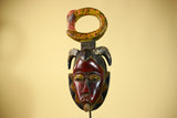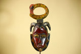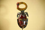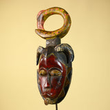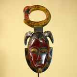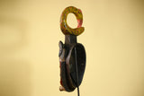 African Guro Tribal Mask Wall Art Hand Carved Serpent Crest Home Decor-G6064