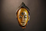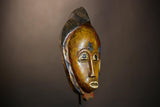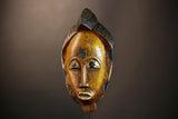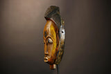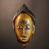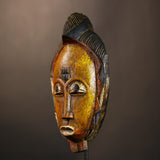 African Handmade Yellow Tribal Wood Mask | Guro Wall Hanging Decor Piece | Unique Ethnic Art | Authentic Cultural Mask for Home Decor -G4955
