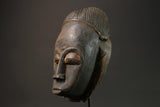 African Mask Baule Tribal Art Face Vintage Wood Carved Mask Wall Hanging -7587
