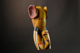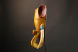 Presenting a striking artifact from the vibrant culture of the Babanki tribe, this exquisite African Elephant Mask is a testament to the rich traditions of Cameroon. Handcrafted from quality wood, this unique piece pays homage to the artistry and heritage of the Babanki people, known for their deep connection to the natural world and their artistic expressions. The intricate design of the mask reflects the cultural significance of elephants within the tribe, symbolizing strength, wisdom, and loyalty. Each detail of this vintage piece has been expertly carved, showcasing the skilled craftsmanship that has been passed down through generations. The mask embodies the deep respect for nature and the spiritual beliefs that are at the heart of Babanki tribal life. Ideal for collectors or as a conversation piece in any home, this African Elephant Mask serves as both a striking wall hanging and a cultural artifact. It enriches any space with the vibrant stories and traditions of Africa, inviting admiration and curiosity. Cameroon, a country renowned for its diverse cultures and artistic heritage, provides the perfect backdrop for such a magnificent work of art. This mask is not just a decorative item; it’s a reflection of a rich history, a unique representation of African tribal culture, and a celebration of the craftsmanship inherent in traditional African masks. Embrace the spirit of the Babanki tribe and enhance your decor with this exceptional piece of artistic heritage.