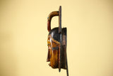 This vintage african mask is a beautifully crafted Guro tribal artwork from Côte d’Ivoire. The elongated face, soft ochre tones, and hand-carved bird crest create a striking silhouette that reflects traditional Guro symbolism. Its textured patina and geometric edging capture the spirit of handmade tribal art.