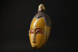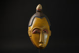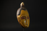 Experience the remarkable Mask of the Guro Baule Wooden Carved Mask, a magnificent representation of West African craftsmanship. This intricately carved African mask exhibits meticulous attention to detail and is beautifully stained in a deep coffee black shade. Originating from West Africa, it proudly displays the unique artistic flair characteristic of the Baule Wooden Carved Mask.