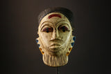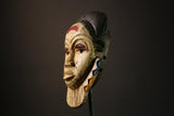 Hand-carved with meticulous attention to detail, this vintage African mask embodies the spirit and ancestral traditions of the Guro people, known for their exceptional skill in mask-making. The mask's intricate carvings and symbolic patterns echo the rituals and ceremonies where such tribal masks played an essential role. Although its exact age and provenance are challenging to pinpoint, the craftsmanship suggests it is a collectible piece from the early to mid-20th century, making it a valuable addition to any collection of African masks.